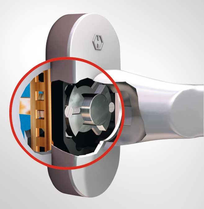 Les poignées bénéficient également d’un mécanisme de verrouillage breveté. Il fonctionne grâce à un élément coupleur situé entre la poignée et le carré de condamnation. Cela empêche toute manipulation de la poignée par l’extérieur, une garantie supplémentaire pour la sécurité de votre habitation. Selon la dimension de votre fenêtre PVC, les paumelles peuvent aussi être renforcées.