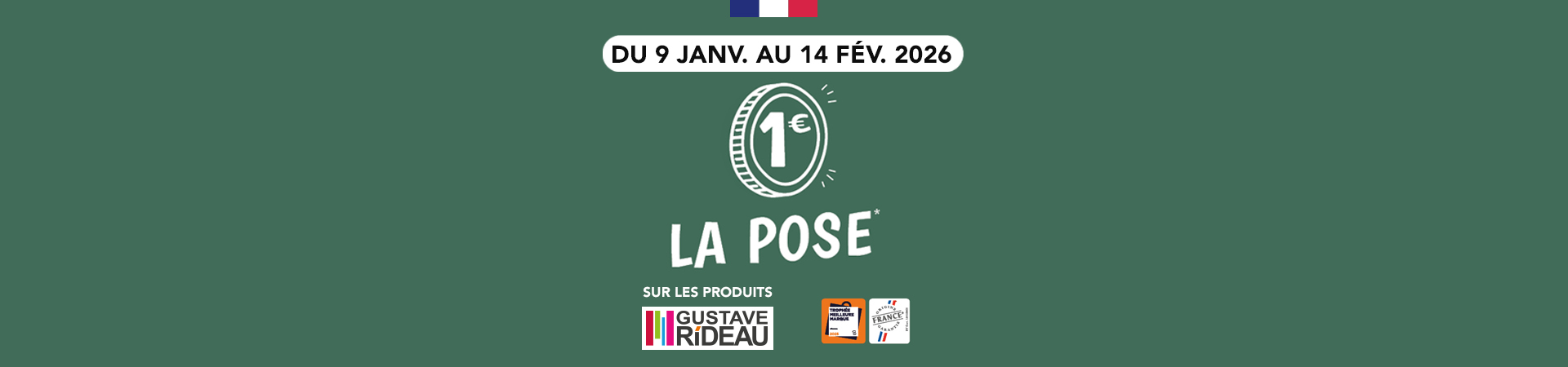 Du 9 janvier au 14 février, profitez de la POSE à seulement 1€ sur tous les produits Gustave Rideau chez Atrio !